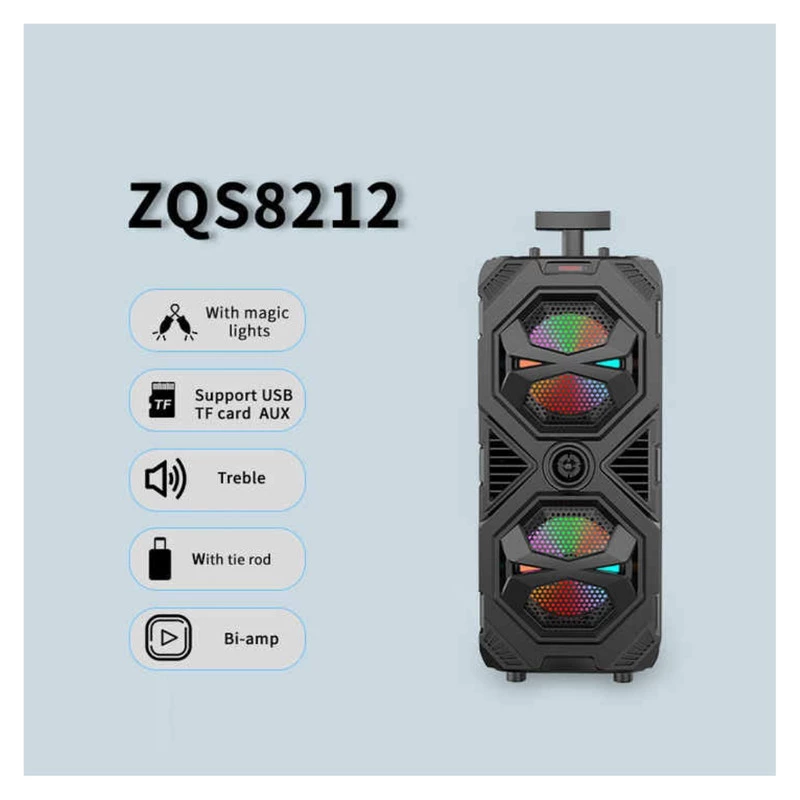 شرکت ساینج ای در زمینه تولیدات صوتی فعالیت دارد و محصول ZQS-8212 این کارخانه یک اسپیکر چمدانی بادسته قابل تنظیم ودوچرخ درزیر برای جابه جایی آسان با قیمت مقرون به صرفه با توجه به امکانات آن است. این اسپیکر یک تکه از دو ساب ووفر هشت اینچ همراه با ال ای دیهای جذاب دور ساب و یک عدد تیوتر برای پخش صداهای ریز موزیک تشکیل شده است. رقص نور اطراف ساب ووفر ها با دکمه تعبیه شده بر روی اسپیکر قابل تغییر و ریتم دهی است که یکی از زیباترین حالتهای آن حالت اکولایزر است.
